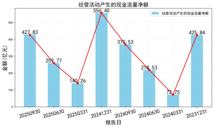但细看单季度,第三季度扣非后净利润高达64.24亿元,同比大幅增长37.9%!更关键的是,公司经营现金净流入达427.8亿元,是净利润的3.5倍。